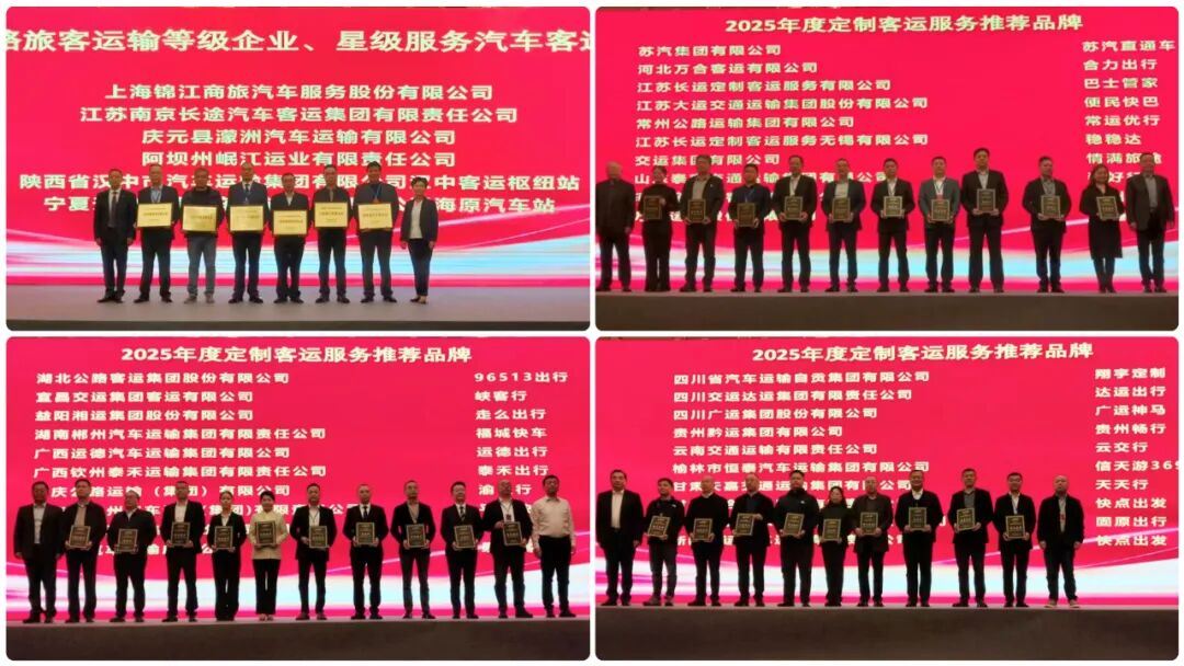 会议向全国道路运输企业等级第二轮第五批道路旅客运输等级企业和服务星级汽车客运站企业代表,以及2025年度定制客运服务品牌单位代表进行了通报表扬。