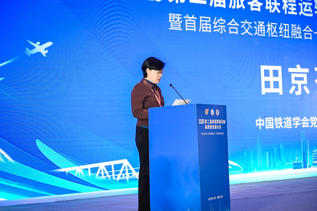 中国铁道学会党委委员田京芬在致辞中表示,“十四五”收官,我国综合立体交通网主骨架建成率超90%,铁路在联程运输成果显著。希望以大本次会为起点深化合作,共促综合交通发展。