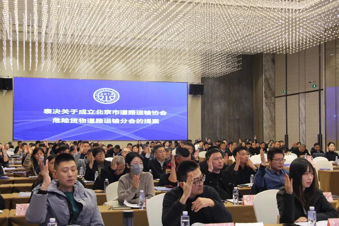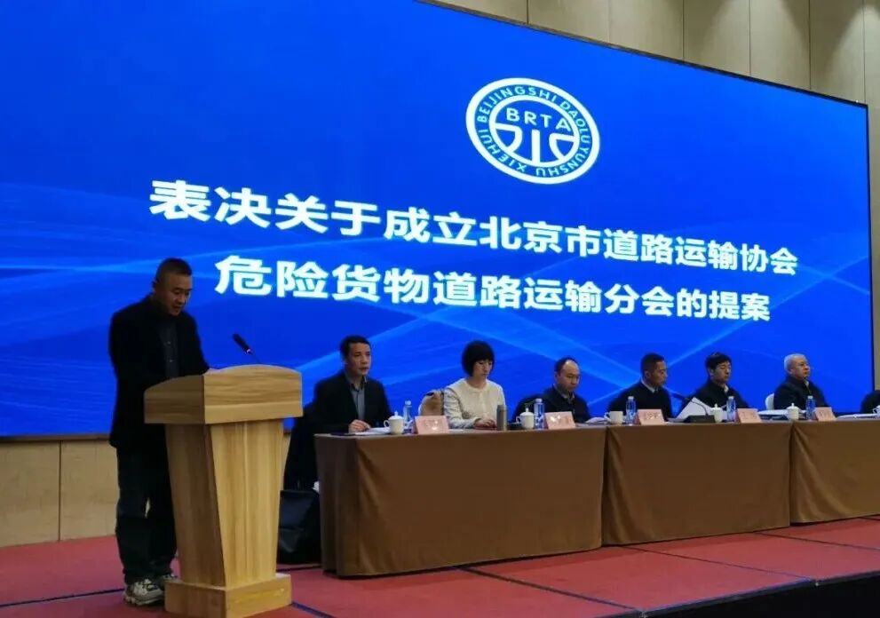协会副会长刘东旭宣读《关于成立北京市道路运输协会危险货物运输分会的提案》和分会会长、副会长单位候选名单